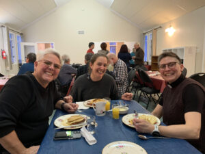 Members of St Mary Magdalene Church, the Church of the Good Shepherd (Wakefield), Grace United Church (Chelsea) and l’Eglise presbyterienne camerounaise gathered in the hall at St Mary Magdalene Church to share a pancake supper on Shrove Tuesday, February 17, 2026. Over 50 people enjoyed a meal of pancakes, bacon, sausages, baked beans, fruit salad and Cameroonian “beignets”.